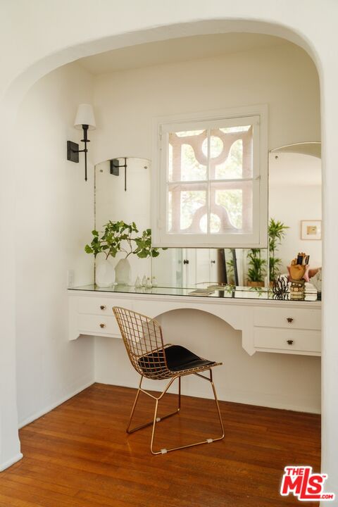 Passed down by generations, this 1920s Spanish exudes classical style and resides north of the Blvd on a beautiful tree-lined street. Lush landscaping illuminates this gem's captivating curb appeal. Enter the gated courtyard that evokes images of relaxing afternoons while reading your favorite book. A timelessly elegant interior embraces you with graceful archways, embellished doors, wrought-iron detailing, magnesite floors, and original hardwood floorboards. Engage in conversation and cocktails in the sunken living room, where high ceilings adorned with intricately stenciled beams complement the expansive glass that frames halcyon views alongside a stunning fireplace with decorative accents. Hold intimate gatherings under the dining area's candelabra-style chandelier, where a wide picture window faces the capacious courtyard. Profuse garden profiles delight the avid cook in the cheerful kitchen with its abundant cabinetry, neatly tucked laundry area, and picturesque breakfast nook that opens to a luxuriant lawn. Ornate railings grace the staircase to the upper level, where two well-proportioned retreats await. One features a private sunroom, while the generous primary pampers you with an integrated vanity alcove, dual closets, an exclusive overlooking balcony, and an adjoining bath with traditional wainscoting, a vintage style clawfoot tub, and idyllic treetop scenery. A versatile bedroom caters to overnight visitors downstairs, sharing a pass-through bath with an office displaying original built-ins. A serene oasis rests in the verdant, sun-kissed backyard large enough to accommodate a pool. A partially covered patio with a decorative outdoor brick fireplace is well-suited for entertaining under the flowing trees. Notables include a wet bar, a convenient basement, and a detached garage. Enjoy proximity to the I-5, Griffith Park, and an array of shops and restaurants in Hollywood, Glendale, and downtown LA! We know you'll feel proud to own this very special home.