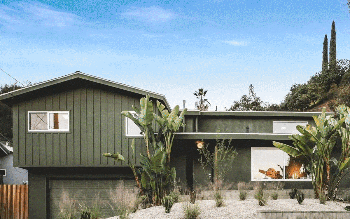 Magnetic Mid-Century Pool Home in the Hills of Eagle Rock! Designed by notable LA-based architecture firm Part Office is 4801 Lockhaven, nestled in a cozy cul-de-sac, offering room to play, entertain and grow! Step into redesigned luxury at every turn, with Concrete Collaborative terrazzo tile floors, plywood detail and architectural touches that enhance the space. Oversized formal living room boasts decorative brick fireplace, with easy gas connection. Step through to a sleek European kitchen with Fisher Paykel and Bosch appliances, caesarstone counters and plenty of storage. Enjoy California indoor/outdoor living with wide-open family and casual dining space offering vaulted, beamed ceilings with sliding glass doors opening to the glistening private pool. Downstairs, a chic powder room is mere steps from the flexible guest bedroom that opens to a grassy outdoor play area! Upstairs, enjoy two renovated bedrooms which share a clean, bright hall bath new natural wood vanity, modern lighting and shower over tub. A few steps up to the master bedroom with picture windows and mountain views, tons of hanging storage, and freshly-tiled master bath w/ oversized shower, new modern vanity and designer lighting. Enjoy twilight entertaining under the stars, tucked into the hillside, with stairs up to additional outdoor space. Drop a couple chairs and enjoy the view! 2-car attached garage, xeriscaped and drought-tolerant landscaping, updated systems throughout. Privacy, peace and high concept architectural design could be yours. Welcome home!