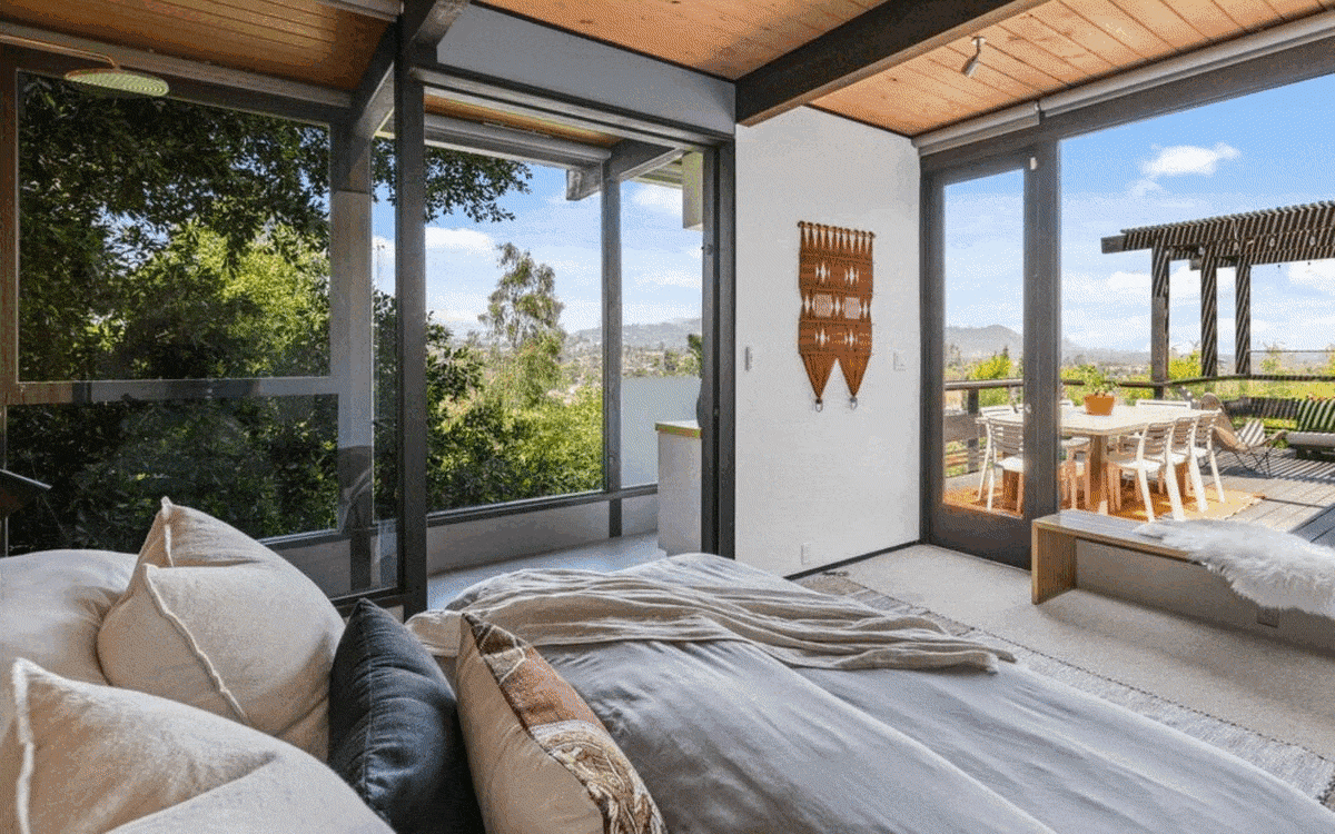 Welcome to the Takahashi Residence, designed in 1967 by AIA architect Thomas Takahashi as his personal home. Perched atop the hills of Silver Lake, this pedigreed post + beam jewel box floats amongst the tree tops offering explosive, panoramic views of Griffith Observatory, Silver Lake Reservoir and the iconic Hollywood sign. Comprised of wood and walls of glass, this extraordinary architectural time capsule consists of 2 bedrooms, 2 bathrooms and a studio space. A sanctuary in the sky, live a serene dream in this tree house like setting, surrounded by the sights and sounds of nature from every room. Period details include cork flooring, redwood decking, original cabinetry and formica countertops. Modern amenities include central A/C, heated tile flooring, and a water filtration system. Hovering over a 1/3 of an acre, containing lush grounds and gardens, Mr. Takahashi's pottery kiln and studio still stand with a collection of his original work. The downward slope lot provides endless potential to create your own park or add an infinity edge pool. This RARE, once in a lifetime opportunity is your chance to own a piece of architectural history that cannot be duplicated again.