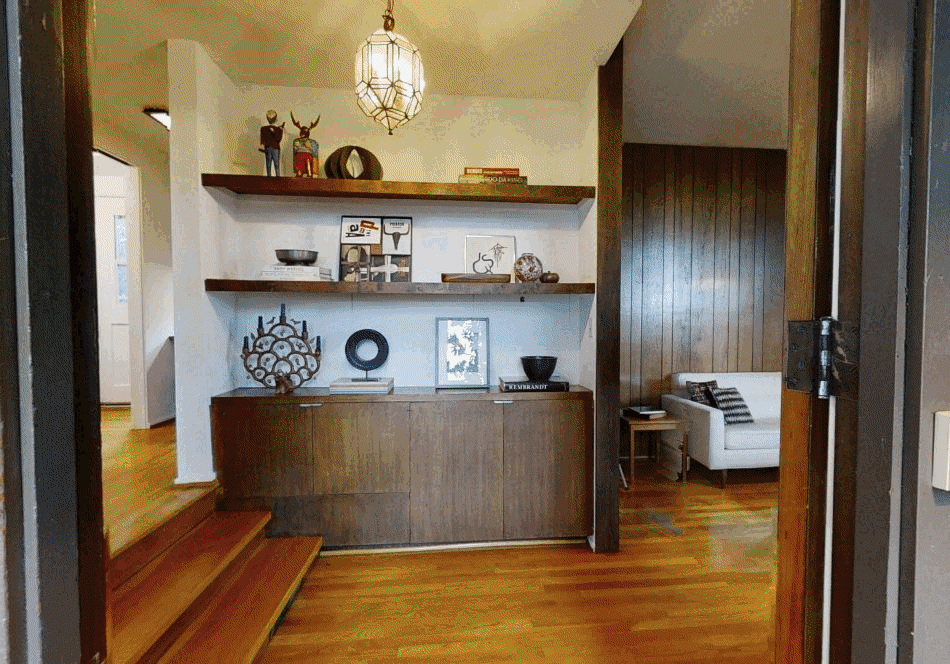 First time offering of the Gary and Enid Freund House, a 1952 Midcentury perched just above the Sunset Strip and Doheny. Architects Douglas A. Brown, Matlin & Dvoretzky, and Liberstudio Architects all contributed sensitive renovations through the years to create a sophisticated multi-level 3 bedroom / 4 bath designer treehouse. The dramatic cantilevered sunken living room hovers over treetops, and the large deck and balconies offer peaceful views of a lush landscape of mature trees and glimpses of the city below. Built into the hillside, the property features indoor outdoor living with walls of glass, an open floor plan, abundant original built-ins and wood paneling, artisan stained glass, two fireplaces, wood floors, a dining room and great room, a large deck for entertaining, and an outdoor spa. The house offers many vintage details, including vintage tile and fixtures in the primary bath, as well as a red soaking tub with views of the city below. Easy access to Beverly Hills, the west side, and West Hollywood.