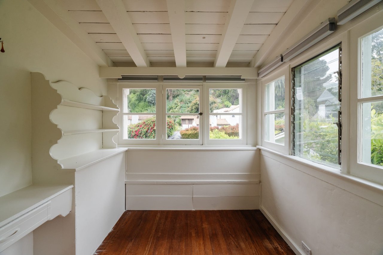 :: The James Conway Residence, 1928 :: First time on the market in 67 years, built by architect James Conway as his personal home :: Just minutes from Franklin Canyon Park, this grand and romantic Spanish has been lovingly cared for and maintained by the same family for two generations, and is now ready for its next chapter :: Vaulted and commanding king post truss ceilings are the hallmark of the oversized and intact living room that has original peg & groove floors, built ins, wooden windows and an arched, tile laced hearth. The deep dining room boasts artisan plaster ceilings and arched french doors, leading to the spacious exterior. Through arched pocket doors, the living room flows into a large den that also has convenient backyard access via additional character rich arched doors. The large kitchen, laundry and breakfast area offer a palate of timeless design for the next owner. On the other side of the kitchen, a bedroom and bathroom are ideal for guests or home office. An elegant, ascending staircase lined with original Malibu-style tiles bring one to the second story, comprised of 3 thoughtfully separated bedrooms and 2 bathrooms. A large, sun filled en suite primary overlooks the exterior and has a dressing area, separate vanity, plenty of closet space and bathroom with original 1928 tiles. A rear bedroom has pocket closets and is next to a second bathroom, also lined with vintage pink and mint 1920’s tile. Current owner has upgraded a majority of the plumbing and electrical systems to handle modern day living as well as installed central heat and AC. The home conveniently sits within the desirable Warner Avenue Elementary and Community Magnet Charter school districts and is just minutes from the serenity of Franklin Canyon Park, which has several area favorite hikes, trails and more. An incredibly rare restoration opportunity for a buyer who has a true passion for classic Los Angeles architecture.