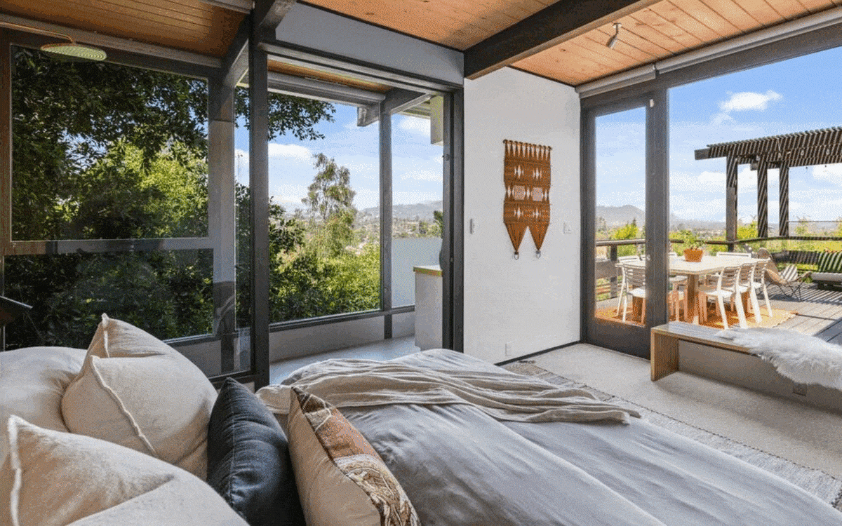 Welcome to the Takahashi Residence, designed in 1967 by AIA architect Thomas Takahashi as his personal home. Perched atop the hills of Silver Lake, this pedigreed post + beam jewel box floats amongst the tree tops offering explosive, panoramic views of Griffith Observatory, Silver Lake Reservoir and the iconic Hollywood sign. Comprised of wood and walls of glass, this extraordinary architectural time capsule consists of 2 bedrooms, 2 bathrooms and a studio space. A sanctuary in the sky, live a serene dream in this tree house like setting, surrounded by the sights and sounds of nature from every room. Period details include cork flooring, redwood decking, original cabinetry and formica countertops. Modern amenities include central A/C, heated tile flooring, and a water filtration system. Hovering over a 1/3 of an acre, containing lush grounds and gardens, Mr. Takahashi's pottery kiln and studio still stand with a collection of his original work. The downward slope lot provides endless potential to create your own park or add an infinity edge pool. This RARE, once in a lifetime opportunity is your chance to own a piece of architectural history that cannot be duplicated again.